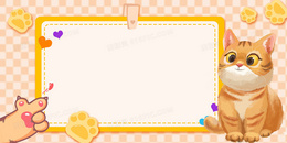 黄色可爱宠物猫猫手绘边框猫爪背景