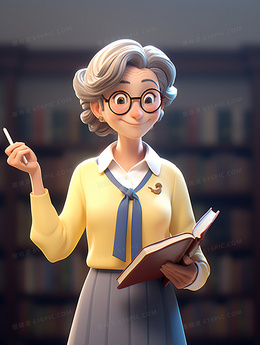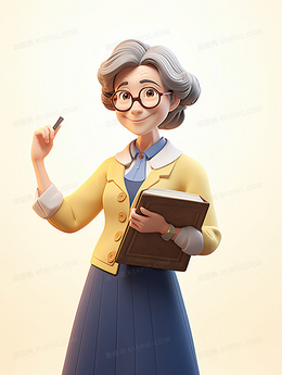 一个老教师抱着一本书职业女性工作3D人物插画