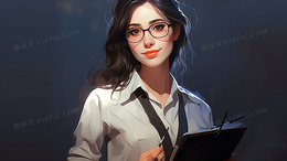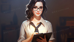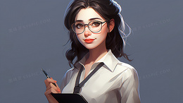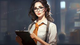 一个穿着白衬衫的女教师职业女性工作卡通插画