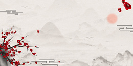 山水古风梅花中国风简约背景