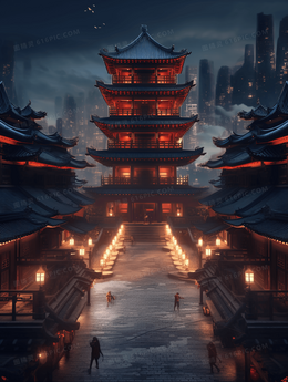 中国风古建筑背景素材