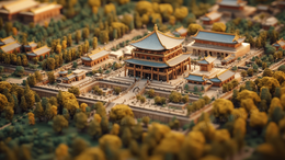 3D立体中国风古建筑模型插画