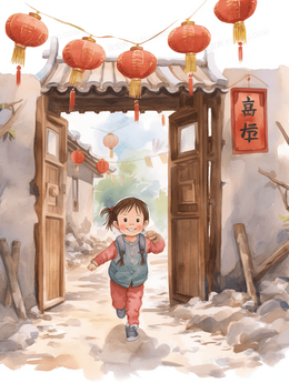 当前位置: 图精灵 > 背景图库 > 插画 > 在老家过年快乐玩耍的小女孩插画