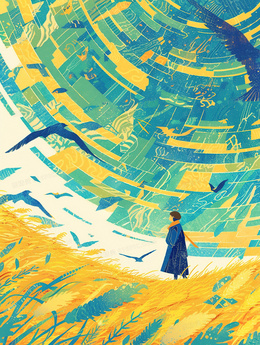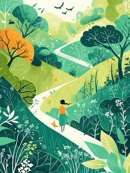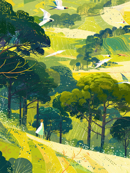 站在草地上的少女插画
