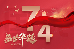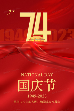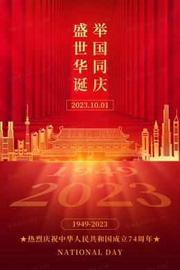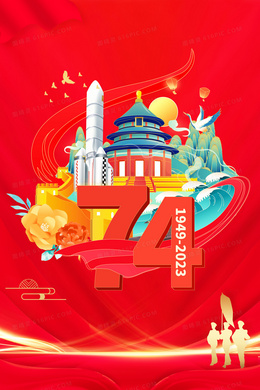 红色大气盛世华诞举国同庆74周年国庆节插画