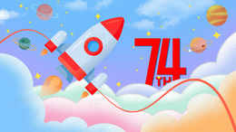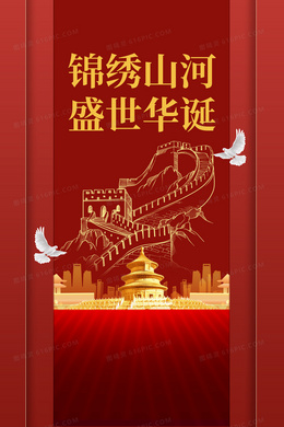 红色喜庆锦绣山河盛世华诞74周年国庆节插画