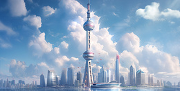 > 上海东方明珠城市地标插画
