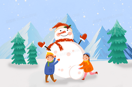 立冬男孩女孩户外堆雪人插画