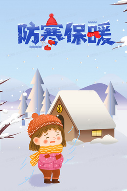 > 立冬节气女孩被风吹插画