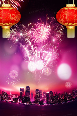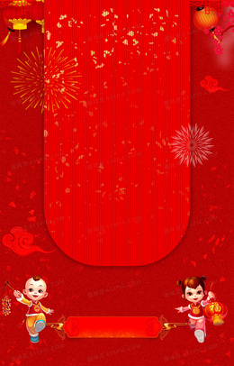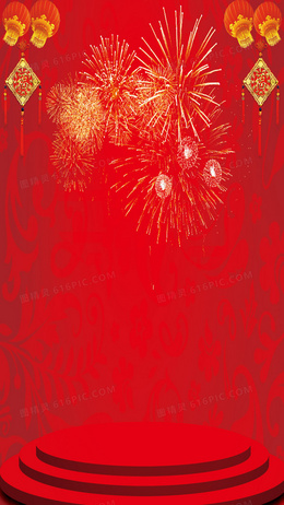 中式春节剪纸喜气过年灯笼烟花大红海报背景