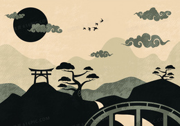 日式旅游文化画册手绘背景素材