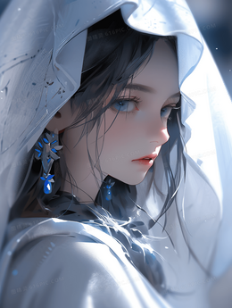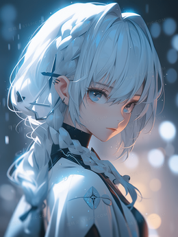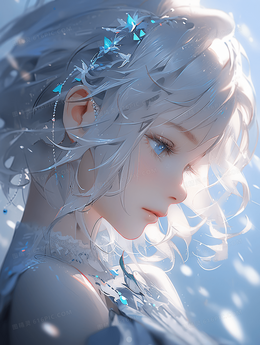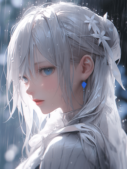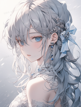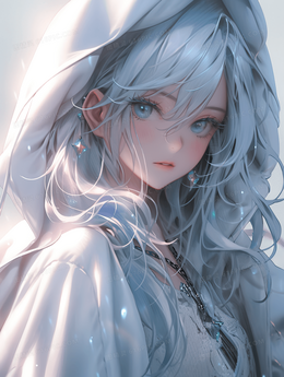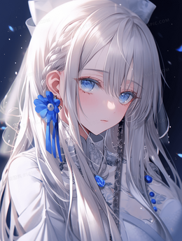 卡通动漫白色长发少女人物插画