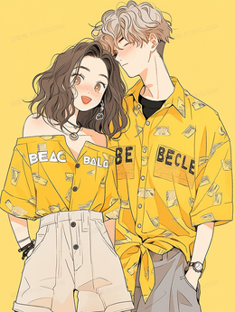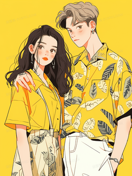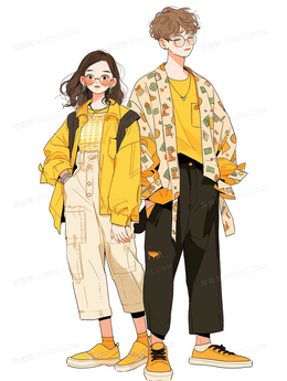 时尚潮流情侣插画