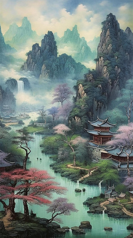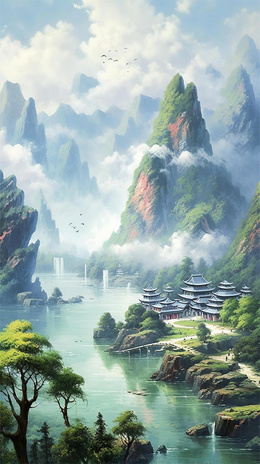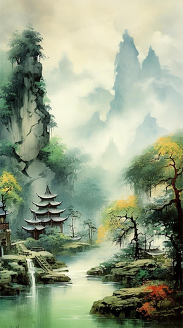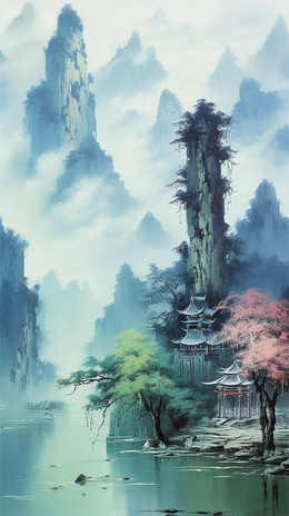 当前位置: 图精灵 > 背景图库 > 插画 > 中国风水墨山水楼台景色