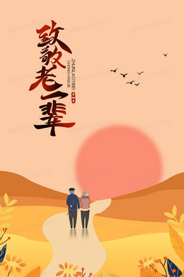 > 重阳节女孩在户外陪老人们聊天手绘插画