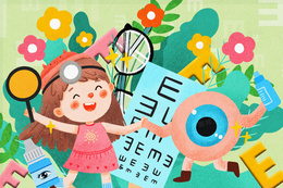 卡通女孩和拟人眼睛全国爱眼日创意插画
