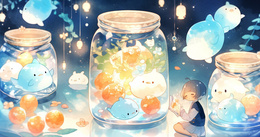 女孩和许愿瓶里的小精灵创意壁纸