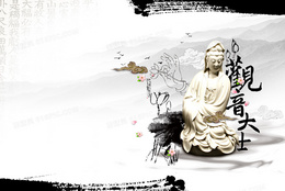 水墨画玉观音海报背景模板