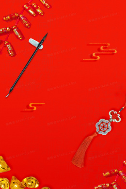 红色喜庆新年元素鞭炮元宝摄影图合成背景