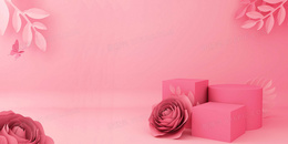 C4D粉色电商销售台阶花朵玫瑰促销销售背景