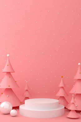 C4D粉色浪漫舞台销售冬季圣诞节剪纸风背景图