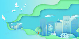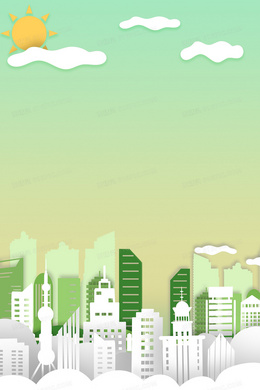 小清新剪纸城市建筑背景