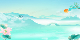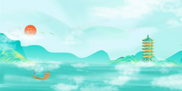 中国风渐变山水古建筑背景