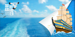 国际航海日船舶出行摄影合成背景