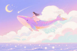 紫蓝粉渐变梦幻鲸鱼云海背景