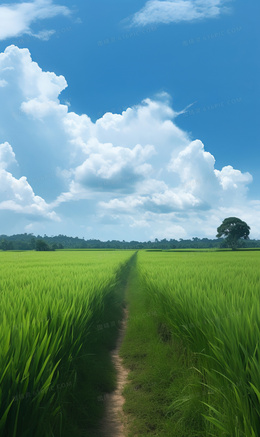 当前位置: 图精灵 > 背景图库 > 插画 > 竖版蓝天白云下的绿色稻田和小河