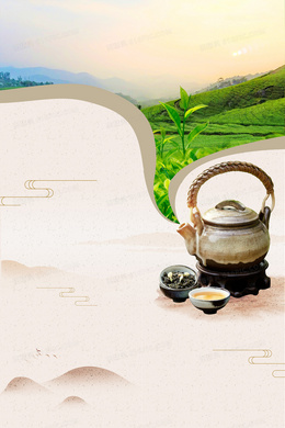 春茶上新茶文化清新茶田茶壶摄影图合成背景