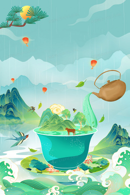 春茶上新茶文化摄影图合成茶田茶壶背景