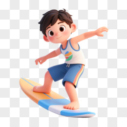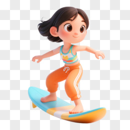 插画人物冲浪免抠元素
