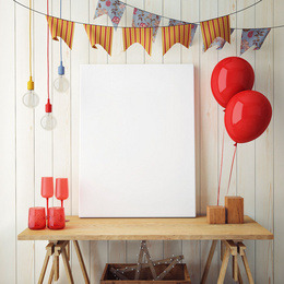 灰背景鲜艳大红色气球