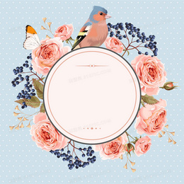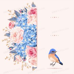 欧式婚礼庆典婚庆手绘鲜花小鸟请柬海报背景