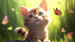 卡通可爱猫咪小猫吃西瓜保护动物插画