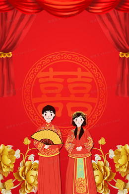 红色大气中式婚礼邀请函贺卡喜庆背景