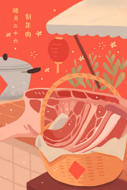 腊月二十六割年肉新年插画