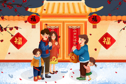 红色新年习俗写对联福字背景