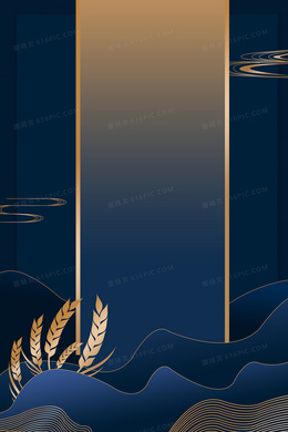 大气中国风中国蓝金色麦穗背景