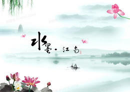 中国风水墨江南海报背景素材