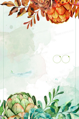 水彩鲜花绿叶边框H5背景素材