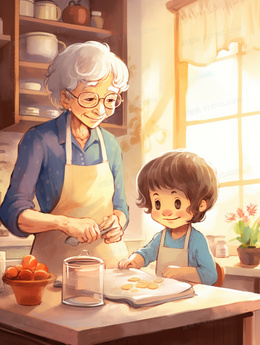 当前位置: 图精灵 > 背景图库 > 插画 > 厨房里正在制作面食的儿童小厨师插画
