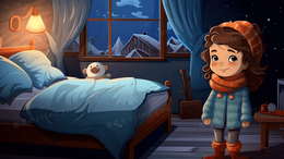冬季在山林里溜冰的小女孩和小狐狸插画