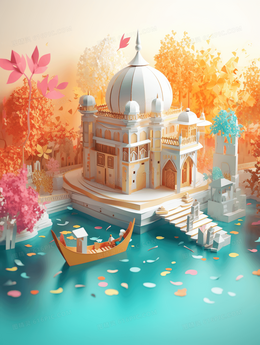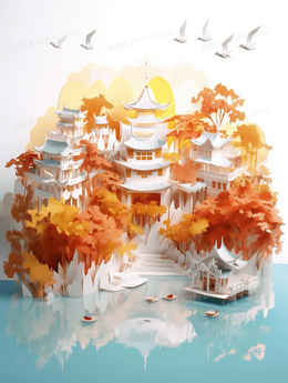 当前位置: 图精灵 > 背景图库 > 插画 > 3D立体国潮风建筑风景插画