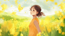 唯美花丛中的卡通长裙少女人物插画