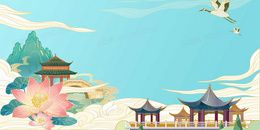 创意国潮中国风旅游吉林南湖四亭城市海报背景
