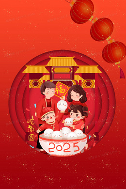 可爱手绘新年元宵节吃元宵逛庙会背景