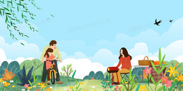 创意卡通创意登山背景