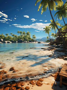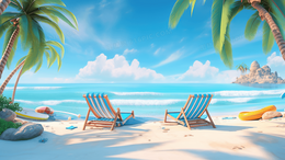 缤纷夏日海边沙滩休闲度假风景图片